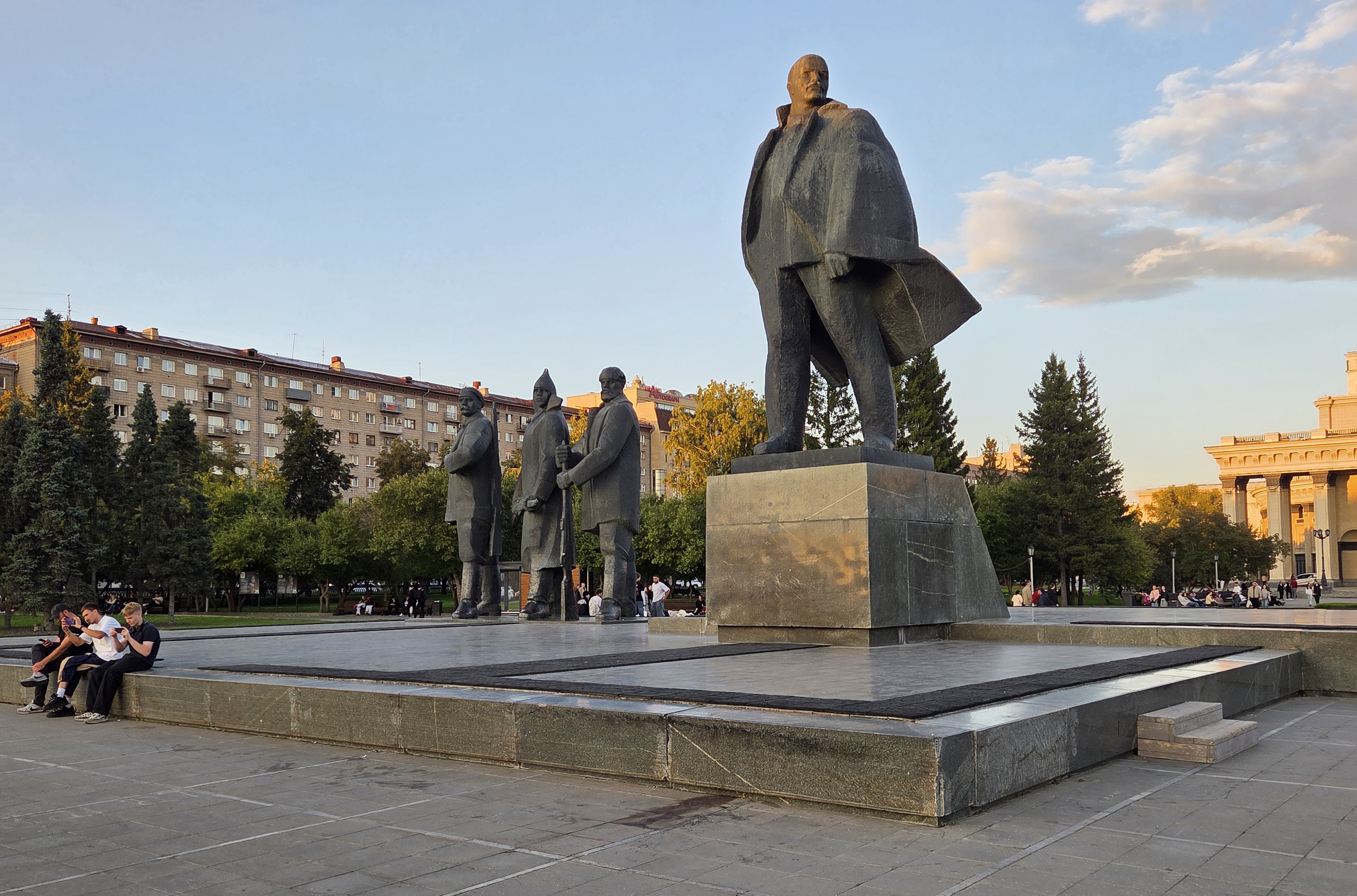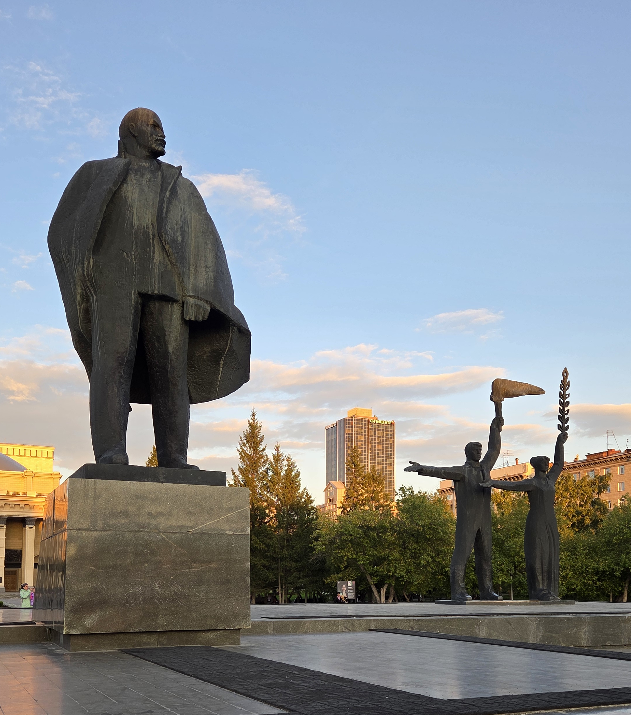 Lenin in Novosibirsk is rough hewn and his stance is strong, feet apart. He is not alone – these three guys have rifles. They will defend the revolution.